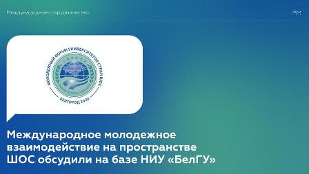 17 ноября на базе Белгородского государственного национального исследовательского университета в онлайн-формате состоялся V Молодежный форум университетов стран ШОС-2020. Форум объединил более 400 ведущих специалистов и молодых ученых из 32 университетов России, Казахстана, Таджикистана, Кыргызстана, Узбекистана, Индии и Китая. Ключевая идея Форума заключается в обсуждении опыта и перспектив развития международного сотрудничества и продвижения проектов в области совместных исследований, наукоемкого предпринимательства, а также в сфере добровольчества и противодействия экстремизму в молодежной среде.